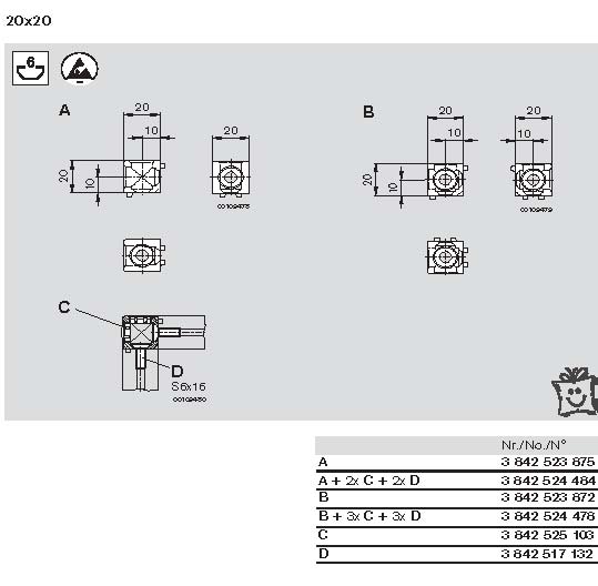 B + 3xC + 3D. Cubic Connector, Fastening Kit & Caps
