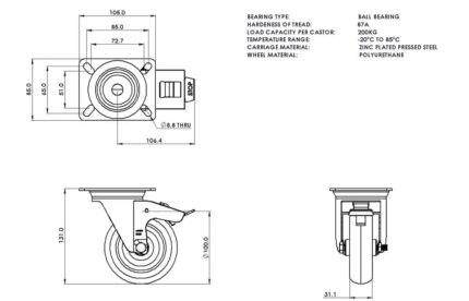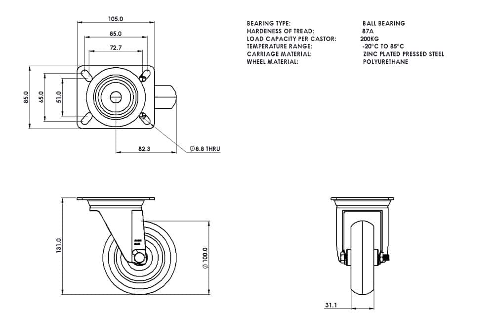 The KJN Aluminium Profile Heavy Duty Swivel Castor is an excellent and robust solution for any project that requires trolley wheels. The castors are made of a doughnut-shaped aluminium core bonded with polyethene which provides a lightweight but durable material to support the load travelling on it. What’s more? With its heavy-duty swivelling steel bearing wheel system, this castor can withstand a max load capacity of 200kg. Purchase the Heavy Duty Swivel Castors now!