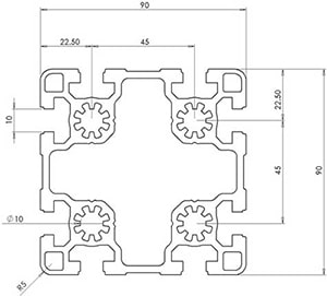 Ideally suited for Enclosures, Frameworks, Work Benches, Laboratory Environments, Machine Guarding, Test Rigs & Protective Screens. Manufactured by KJN Aluminium profiles.