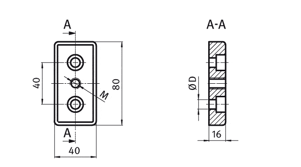 Description: To mount leveling feet, rollers, hooks or similar components; connects to the profile sideways