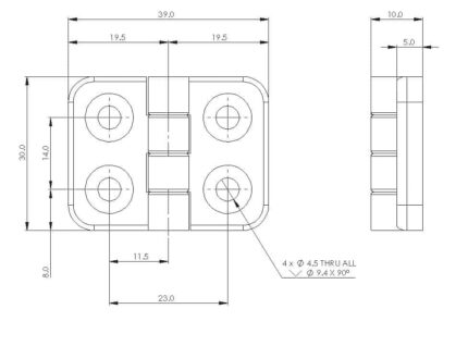 Fastening: from the front using M4 CountersunkScrews,