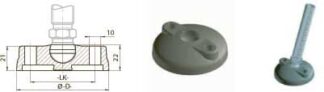 Base For Swivel Feet, Ball Joint 22, Nylon, With Bolt Down Holes