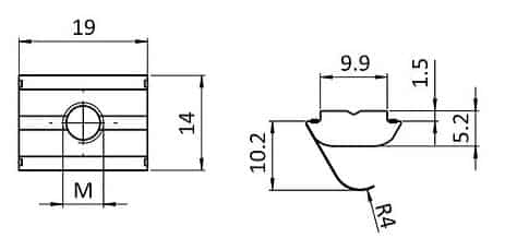 Suitable for use with 10mm slot profile. Self Aligning with Spring
