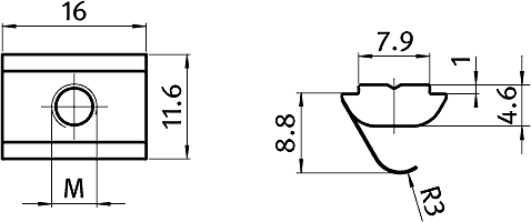 Suitable for use with 8mm slot profile