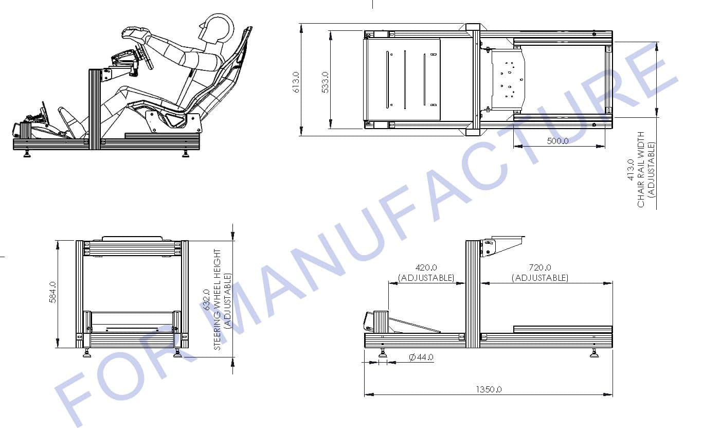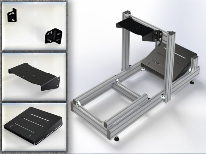 Sim rig framework is cut to length with aluminium profile drilled and supplied with fittings and brackets for assembly which allows the frame to be highly adjustable.