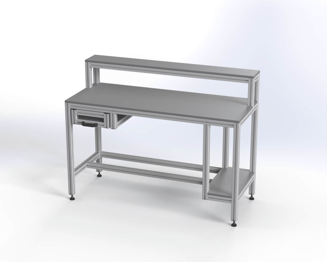 The commercial-grade Shelved Workbench with Drawer from KJN Aluminium Profile is a great addition to your workshop, factory or lab. It’s sturdy and heavy-duty which makes it easy for you to assemble with all the necessary fittings included in one box! This bench has 1 upper shelf, 1 lower shelf and a drawer, so has plenty of room for tools, supplies and other materials, this ensures that equipment and materials are neatly organised.